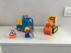 Inclusief 2 bouwvakkers, een vrachtwagen met kiepbak en een graafmachine op rupsbanden die kunnen bewegen, draaibare cabine en gro