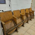 5 chaises de cinéma connectées en bois bon état, pas de réel dommage au bois, mais des traces d'usure.