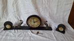 Antieke klok uit 3 delen. Met sleutel. Klok werkt nog. Achterkant klok roest.