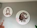 3 wandcirkels incl. Ophangsysteem. - Uil 60cm doorsnede - beer 80cm doorsnede - hertje 100cm doorsnede