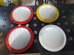 4 plafonniers ronds vintage à ampoule à visser. (Sans les ampoules). Etat impeccable : deux rouge, un jaune, un blanc.
