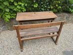 Ancien banc d’école rétro en chêne, 2 places. Solide et en bon état. Parfait pour une déco vintage ou pour les enfants. À Venir chercher sur place – s