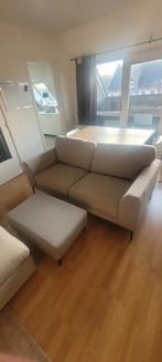 Comfortabele en ruime 2-zit zetel met makkelijk verplaatsbare voetbank erbij. Afmetingen: breedte: 90cm lengte: 180cm hoogte: 90cm voetbank: breedte: 50cm lengte: 80cm hoogte: 40cm