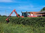 Snoeien van haag en heg met armmaaier met waterpasindicatie alsook inkorten van haag met zaagbladen, kan tot op meer dan 4 meter hoogte. Snoeien van overhangende takken tot 18cm dik met zaagbladen, me