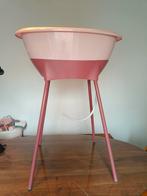 Roos babybadje van luma met babyzitje om de baby te ondersteunen. Makkelijk uit elkaar te nemen om klein op te bergen of mee te ne