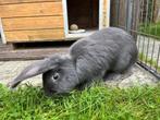 3 jonge konijnen zoeken een nieuwe thuis. De blauwe is een rammelaar. De andere 2 zijn voedsters ze zijn 6 maand oud. Niet schuw