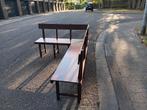 Beau canapé d'angle robuste en chêne teinté de couleur palissandre. Peut être placé à l'extérieur ou à l'intérieur. Pe