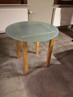 Bijzettafel onderstel uit beukenhout glazen tafelblad afmetingen: - hoogte 70cm - diameter tafelblad: 75cm
