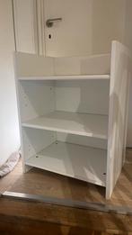 Meuble avec 2 étagères fixes et 1 étagère mobile. Dimensions : l 57,5 cm x p : 44 cm x h : 75,5 cm. Couleur : blanc en bon état, t