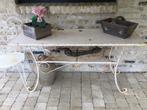 Oude tuintafel, sidetable, ongeveer 140 cm lang en 40 cm diep. Heeft een opknapbeurt nodig. Elk bod is welkom.