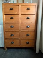 à vendre : grande commode en teck massif, peint en noir, avec 14 tiroirs de différentes tailles. Meuble très pratique et robuste, idéal pour les salons, les bureaux, les vestiaires, les magasins ou le