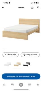 Tweepersoonsbed ikea malm. Afmetingen: 160x200 kleur: zoals op foto onderaan bed aan één kant lades. Twee bijpassende nachtkastjes