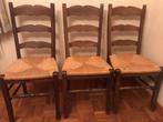 12 chaises en chêne robuste, avec sièges en osier en très bon état.