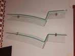 2 glazen leggers in gebogen glas dikte: 8 mm lengte: 120 cm hoogte: +/- 16 cm onafhankelijk op te hangen met de bijgeleverde originele bevestigingskle