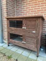 Konijnenhok in goede staat. De 2 verblijven zijn niet met elkaar verbonden. Met mestlade om het verblijf makkelijk schoon te maken