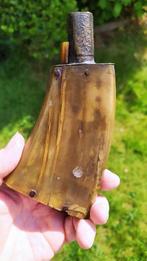 Ancienne petite poie a poudre entièrement en corne bon état mais manque le couvercle du bec verseur