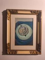 Heel bijzonder schilderijtje in olieverf van de zuid-afrikaanse kunstenaar katrine ambrose. 1995. 30 X 20 cm lijst 50 x 40 cm in hout met glas