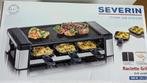 Raclette grill toestel severin. Voor 6 personen. Met houten spateltjes. 850 Watt. Voor vlees of vis op de grill en kaas met groentjes in de pannetjes