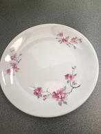Vintage theeservies of koffieservies bestaande uit 6 tassen, 5 ondertasjes en 6 dessertborden. Met stempel 'la porcelaine de baudour'. Wit met roze bloesems. Ook af te halen in 3271 scherpenhe