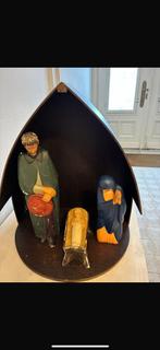 Kerststal met maria, jozef en baby jezus in hout. Vintage. Mayen kribbe h45 en b38 bij voorkeur op te halen in etterbeek. (Je kan er gemakkelijk parkeren.)