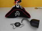 Disneyland paris - piratenhoed mickey (prima staat, mooi, zacht), haak (plastiek met handvatje binnenin de haak) en ooglap (met rekkertje) deze 3 stuks gekocht in eurodisney worden samen verkocht voor