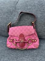 • Gucci horsebit 1955 chain handtas roze GG canvas, Envoi, Utilisé, Rose, Sac à main