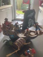 1) pirate boot met sloep en zeerovers. 2) Kasteel met ridders en kanon 3) kleine gevangenis 4) (griezel) huis: uitvouwbaar: 3 luik met mannetjes.