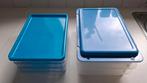 Metalen bewaardozen met plastiek deksel (blauw / geel / rood) en handig hefsysteem