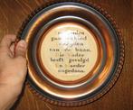Hoeveel wil je er voor geven? Doe een voorstel* eind jaren '40 vintage koperkleurig schoteltje met tekst "zeer zelden gaa