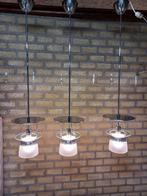 • Zeldzame Vintage Industriële Hanglampen –set van 3 stuks, 75 cm ou plus, Verre, Comme neuf, Enlèvement