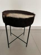 Knap krukje of bijzettafeltje metaal onderstel afgewerkt met koeienhuid enkel gebruikt als decoratie en rookvrij. Prijs 40€