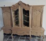 Eiken wandkast, bestaande uit 2 delen boven en onderkant ,2.20 M breedte . 1.90 M hoogte, diepte 0.52 M er is ook nog een vitrinekast beschikbaar en een kleine dressoir, verkrijgbaar apart. Bieden