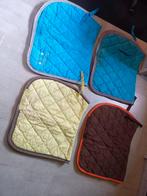 Zadeldekjes, zowel gebruikte als nieuwe; peesbeschermers (links full, rechts cob / pony); eczeemdeken maat 125/90; singels; laarzen (38 plastiek, 40 e