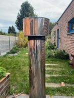 Inox schoorsteen met kopstuk. Dubbelwandig 180mm. Hoogte 112cm zonder kop. Diameter 28cm (aan kop 36,5). Vervangen wegens overschakelen naar 150mm.