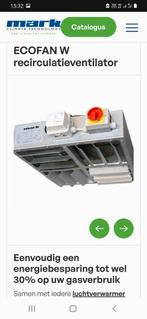 4-weg recirculatieventilator. Thermostaatgestuurd. Verwarmde lucht naar lagere delen van het gebouw (= energiebesparing ) of afkoe