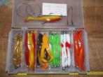 Grande boîte contenant 15 jerkbaits en bois dur faits à la main. Elles sont toutes comme neuves et la plupart d'entre elles co