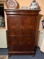 Magnifique meuble secrétaire ancien en bois massif, avec superbe veinage. Le dessus est en marbre, en très bon état. Le plateau s’ouvre pour révéler un espace bureau avec plusieurs petits tiroirs de r