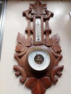 Barometer en thermometer réaumur/celcius in handgesneden houten frame, hoogte 48 cm. Ophalen regio gent. Indien verzenden, op eigen risiko, en aan prijs volgens wijze van versturen.