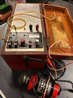 Houten koffer met: - tank voor bezine - pomp - motorstarter - plaats voor 12v batterij - gloeiplug kabel
