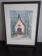 Belle œuvre d'e goemine (1883-1955) la gravure est réalisée à l'encre noire avec couleur. Ce dessin représente une chapell