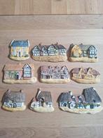 Set van 9 muurhangertjes diverse huisjes, cottages, hotel,... Met stempel "hand crafted and painted in gloucestershire"
