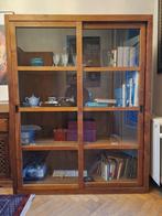 Mooie teak houtenvitrinekast met twee schuifdeuren hoogte: 190 cm breedte: 150 cm diepte: 50 cm