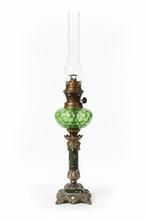 Te koop aangeboden: een prachtige, authentieke antieke olielamp uit het begin van de 20e eeuw (ca. 1890-1910). Een sfeervol stuk voor de liefhebber van antiek en industrieel erfgoed. Brander: originel