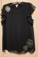 Top ample noir neuf, taille 42, de la marque alba moda fini avec des strass sur le devant. Largeur de la poitrine d'une aisselle à l'autre : 48 cm. Longueur : 68 cm. Frais de port à la charge