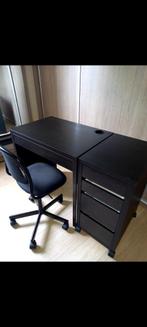 Bureau 105x50 cm ladenblok op wieltjes 75x35 cm bureaustoel op wieltjes, in hoogte verstelbaar kan opgehaald worden in kruisem (z