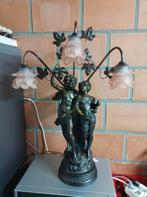 Mooie oude gave staande lamp met 3 lampen kapjes. Deze is 70 cm hoog. Dan een muurlamp met glazen kapje. Alle in mooie staat. Nu ophalen voor maar 50,
