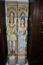 2 prachtige oude unieke beelden die uit een kasteelhoeve komen en dienen als 2 steunen (links en rechts) voor onder een schouwbalk of open haard. Deze