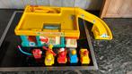 Garage vintage chicco 3 voitures 1 hélicoptère 4 poupées, une sans ballon dedans, une sans autocollant et une avec un autocollant endommagé. ÉTat comme indiqué sur la photo, fonctionne.