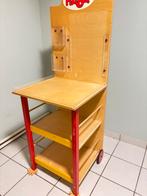 2 tables rondes et 2 tables carrées disponibles, 1 chaise rose clair, 1 chaise rose foncé et 4 chaises bleues pour enfants. Le prix par table est de 12 euros/pièce et de 6 euros/pièce pour les sièges.