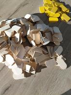 300 plaquettes de savadge trouées prètes à peindre et à coudre une petite vingtaine sont peintes en jaune d'un côté ( une couc